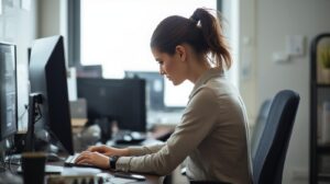 右側の首の痛みが続く場合、日常の中で無意識に“右側へ負荷をかける姿勢”が積み重なっていることがあると言われています。特にPC作業では、マウスの位置や腕の置き方で右側に重心が偏りやすいと紹介されています。「気付くと同じ姿勢で何時間も作業していた…」という方も多く、痛みの背景として姿勢のクセが大きく関わることがあるようです。