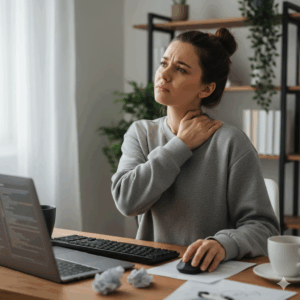 右側だけ痛い方によく見られるのが「右手だけで作業している時間が長い」ことだと言われています。特にデスクワークやスマホ操作は、知らないうちに首が前に出てしまい、右側の筋を使いすぎてしまう傾向があるという説明があります。「気づいたら全然動いてなかった」という声も多く、30分に一度は肩を回したり立ち上がるなど、小さな動きが首の負担を軽くするのに役立つと言われています。