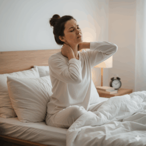 「寝て起きたら右側だけ痛い」という声もよくあります。これは 寝姿勢のクセ が関連していると言われており、特に右側を下にして寝る時間が長い場合、首の角度が偏り筋が緊張しやすいとされています。枕の高さが自分に合っていないと、首の自然なカーブが保てず、朝の片側痛が出やすいという説明もあります。
